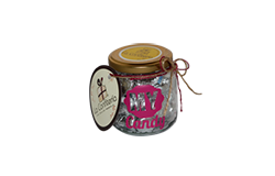 Frasco de Vidrio Pequeño con Diseño y 26 Und de Chocolates Kisses.