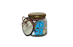 Frasco de Vidrio Pequeño con Diseño y 12 und de Chocolates Mini Nuggets
