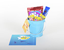 Balde metálico con stickers de animal marino para decorar y tarjeta personalizable.
