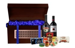 Baúl deluxe en madera con tapa y cajón, lamina de acero, logo en grabado láser y manija en ecocuero.