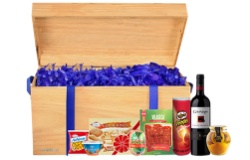 Baúl deluxe en madera con tapa y cajón, logo en grabado láser y manija en ecocuero.