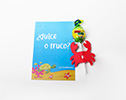 Bon bon bum con decoración de animal marino en papel y tarjeta en empaque transparente.