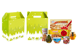 Caja de cartón corrugado kraf. con cierre semiautomático, impresión en policromía y plastificada.
