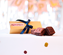 Caja en cartulina gruesa con cubierta deslizable de tu color corporativo y moño en cinta de tela.