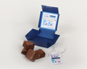 Caja en cartulina plegable con tarjeta adhesiva. Medidas: 9x9x5 cm