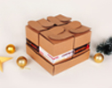 Empaque:• 4 cajas de 19 x 13,5 x 13,5 cmque forman una Caja de cartón 28 x 28 x 20 cm• Cartulina con hilo de Yute y estampillas navideñas