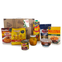•  Caja de cartón micro corrugado con manija 37,5 x 27 x 10 cm, tarjeta de la temporada con tu logo y una postal.