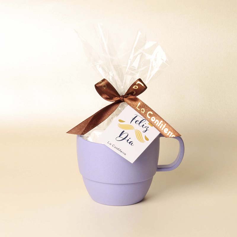 Pocillo en plástico, color a elección y tarjeta.