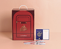 Caja en maule tipo maleta con impreso y mensaje personalizado