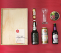 Los buenos momentos son para compartir, y como no hacerlo con unas buenas cervezas, un vaso cervecero, unos dulces y chocolates para acompañar el rato. Todo dentro de una hermosa caja en pino