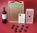Regalos sutiles y directos, sencillos pero contundentes. Una botella de vino casillero, una caja de trufas, todo en empaques de madera en pino con diseños minimalistas